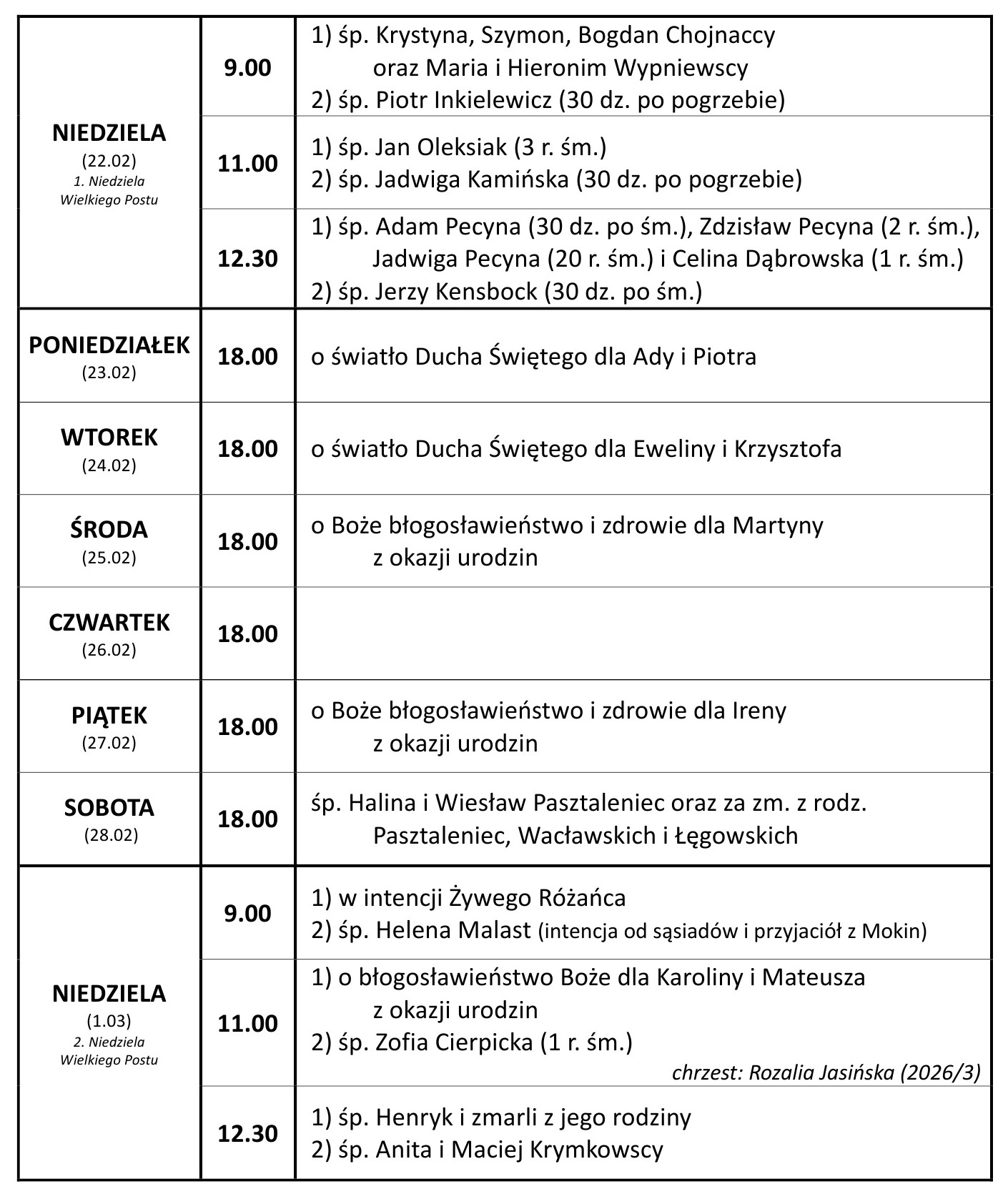I. Niedziela Wielkiego Postu (22.02.2026)