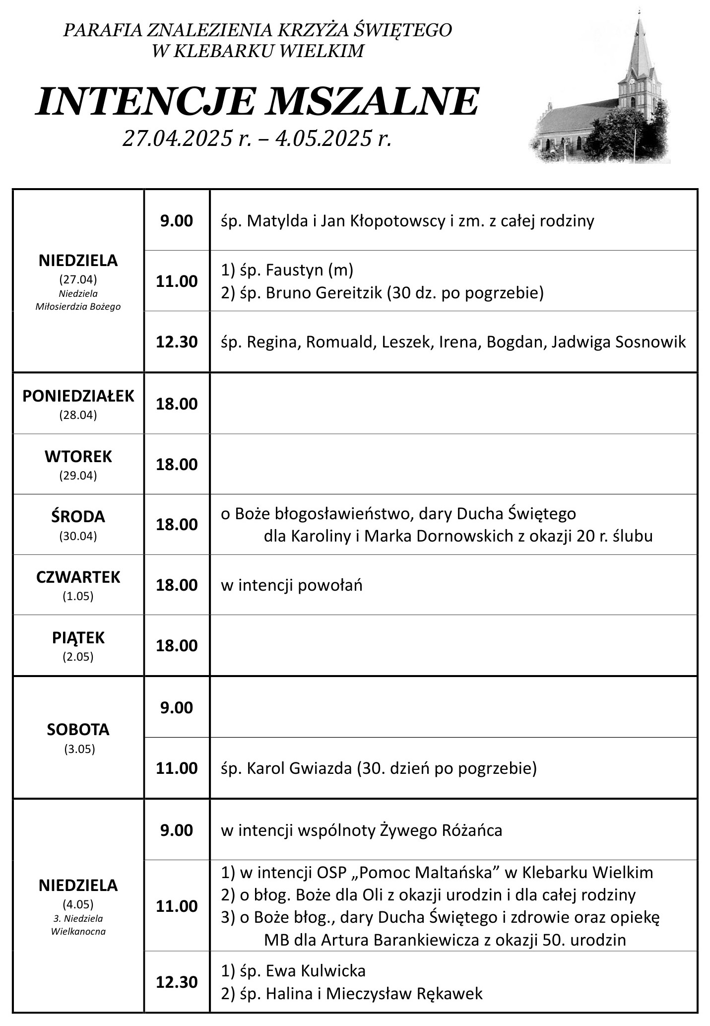 - Dziś po mszy świętej o godz. 11.00 Koncert Pieśni Wielkanocnych w wykonaniu Chóru „Misericordia Dei” z Olsztyna.