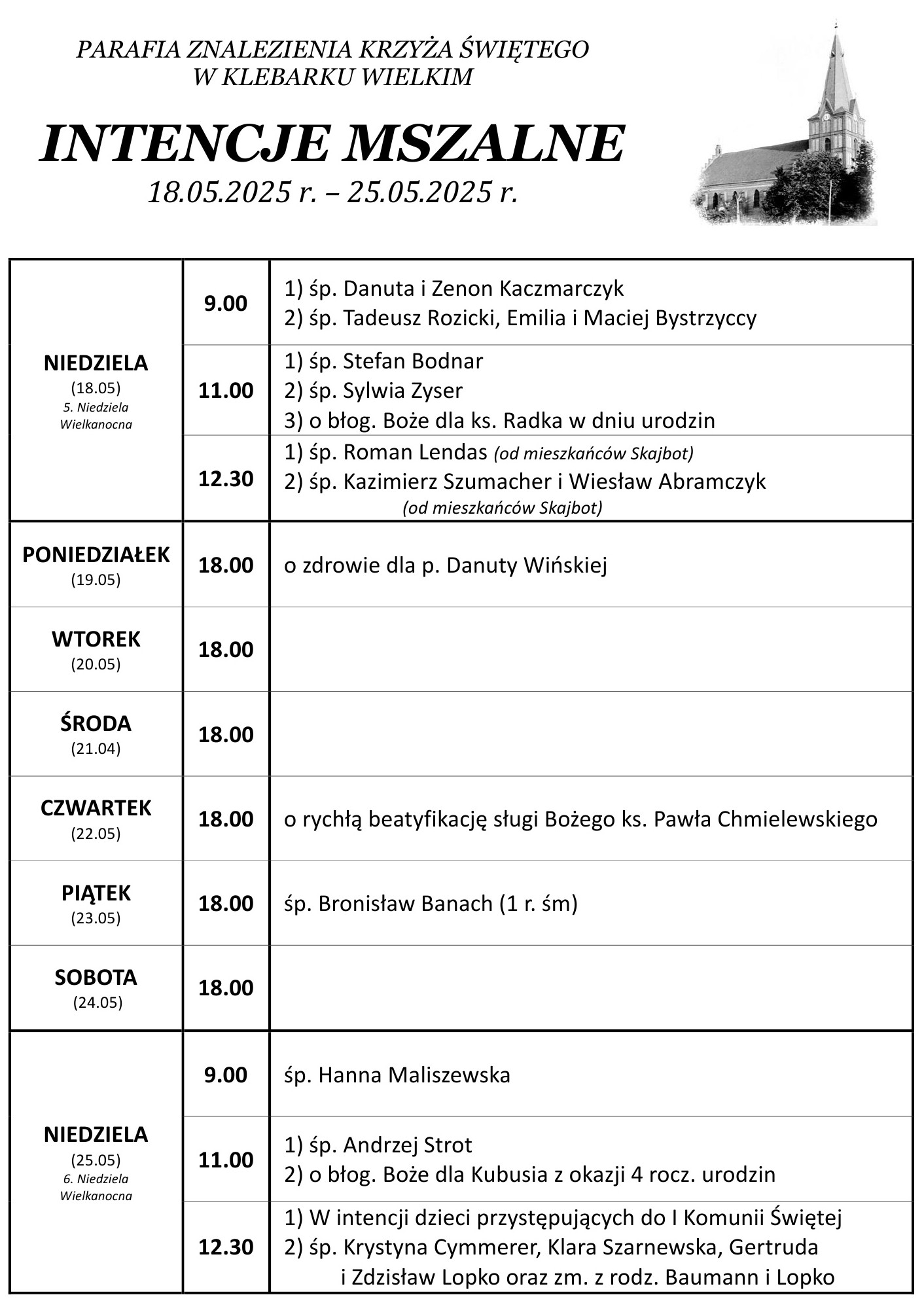 5. Niedziela Wielkanocna (18.05.2025)