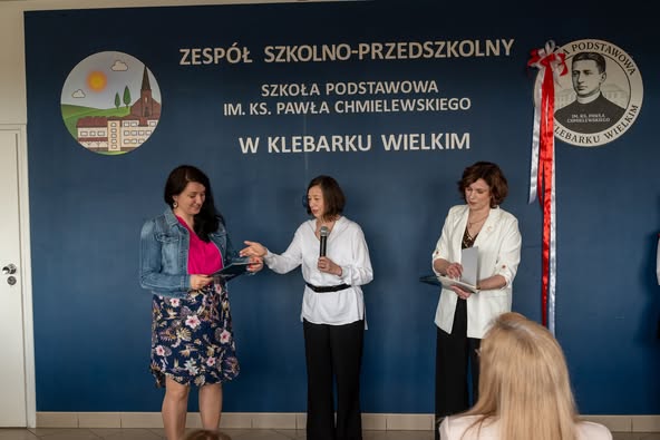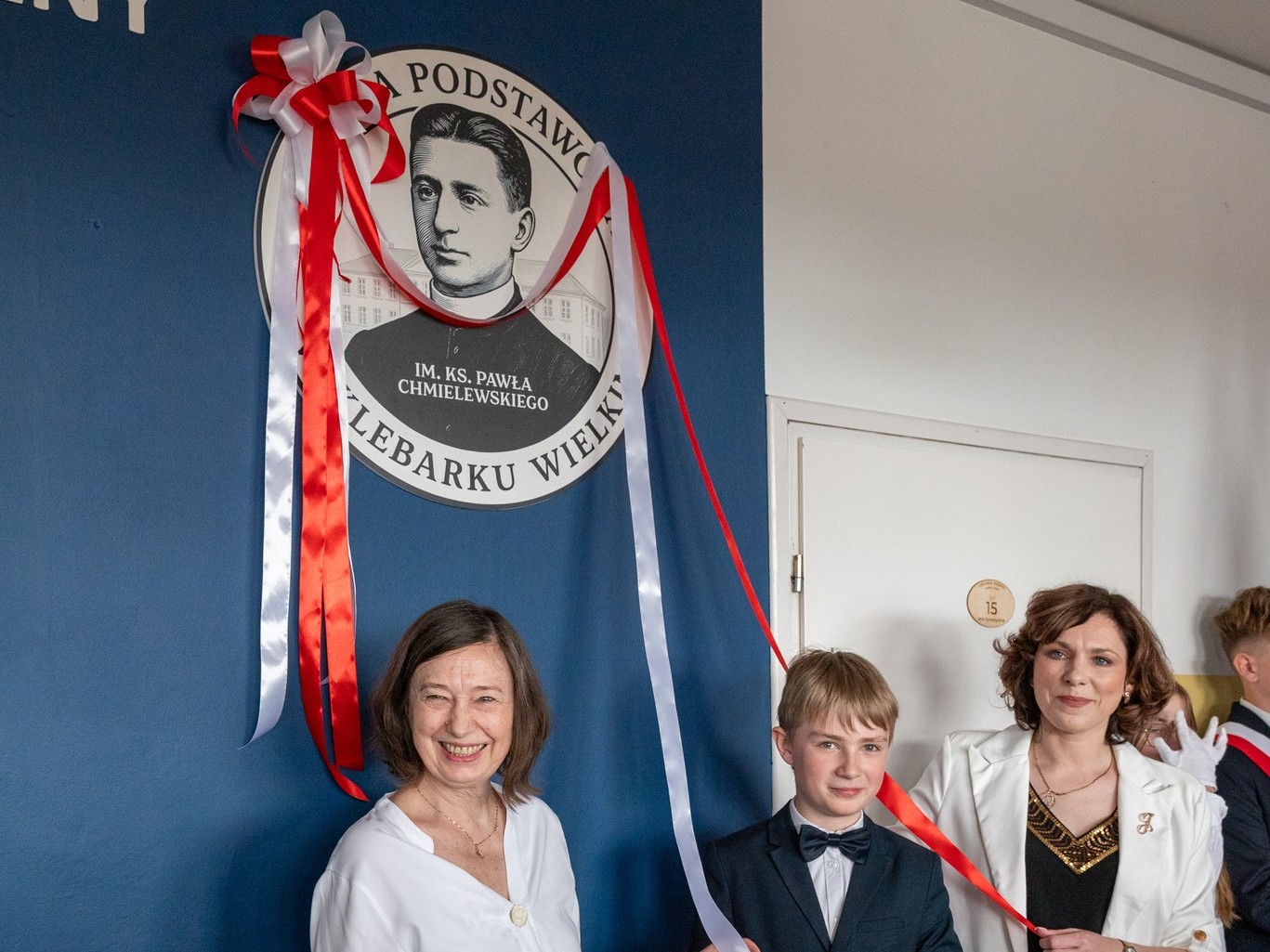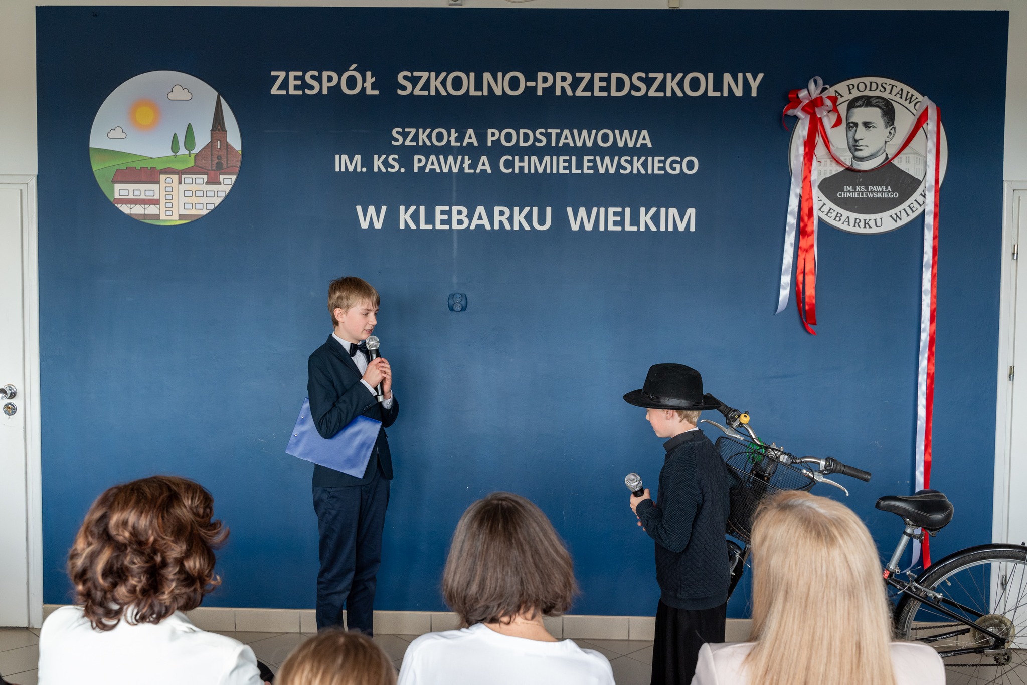 Odsłonięcie logo Szkoły Podstawowej im. ks. Pawła Chmielewskiego w Klebarku Wielkim (19.05.2025)