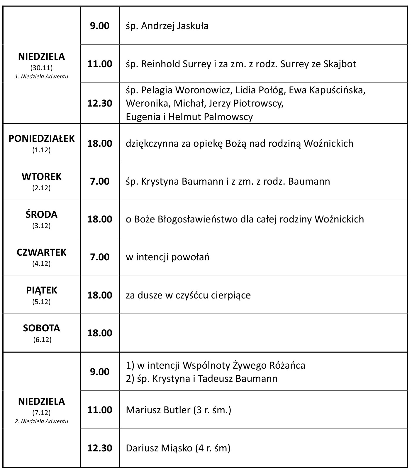 Intencje mszalne (30.11.2025 – 07.12.2025)