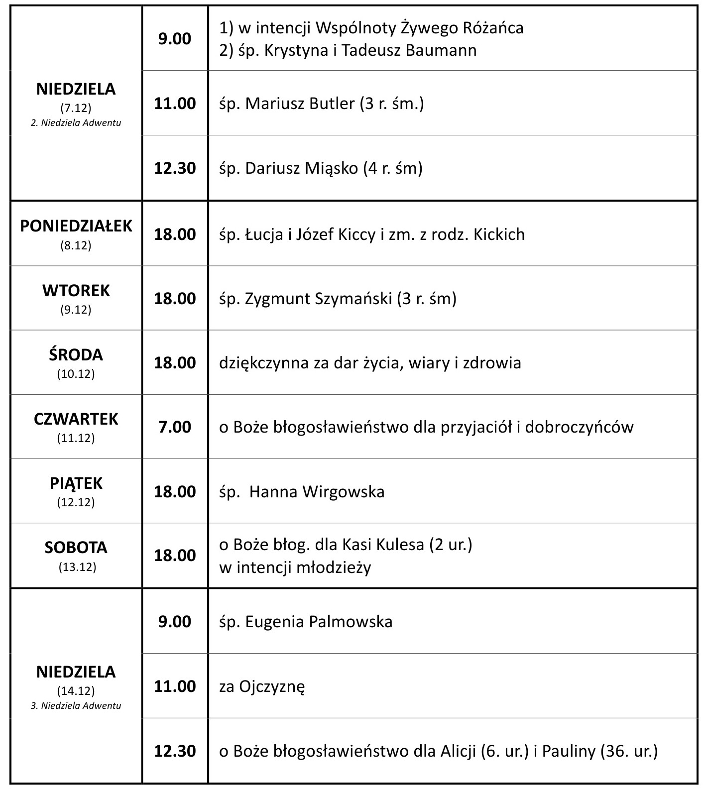 Intencje mszalne (7.12.2025 – 14.12.2025)