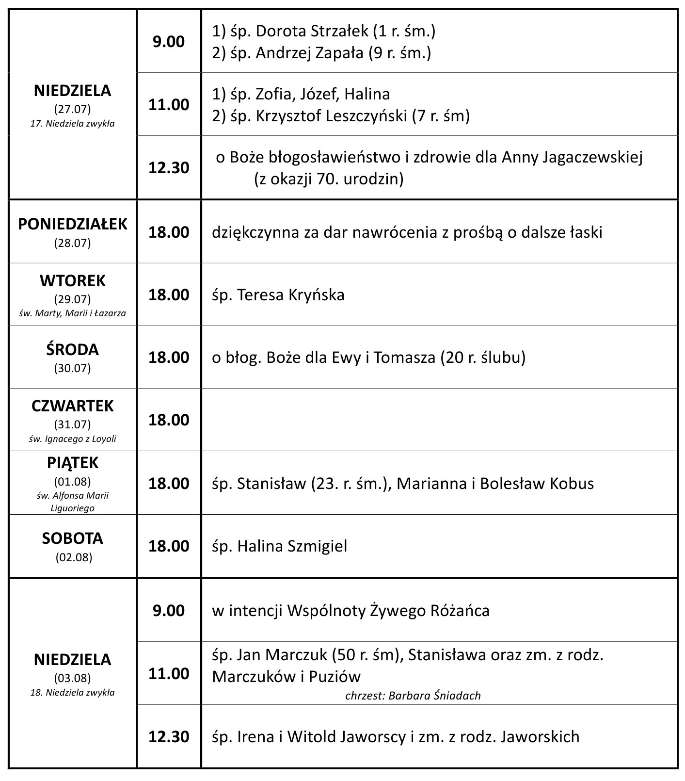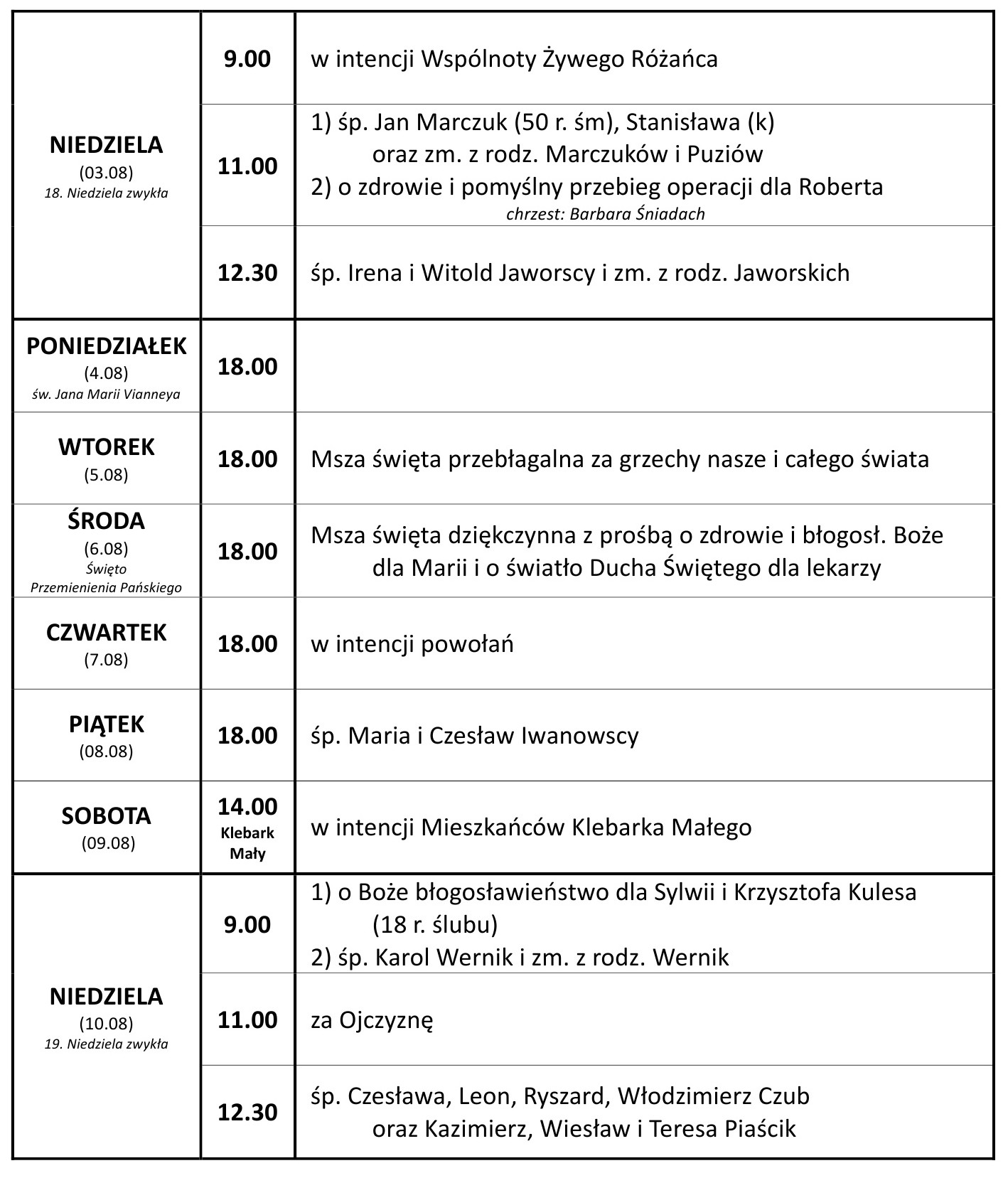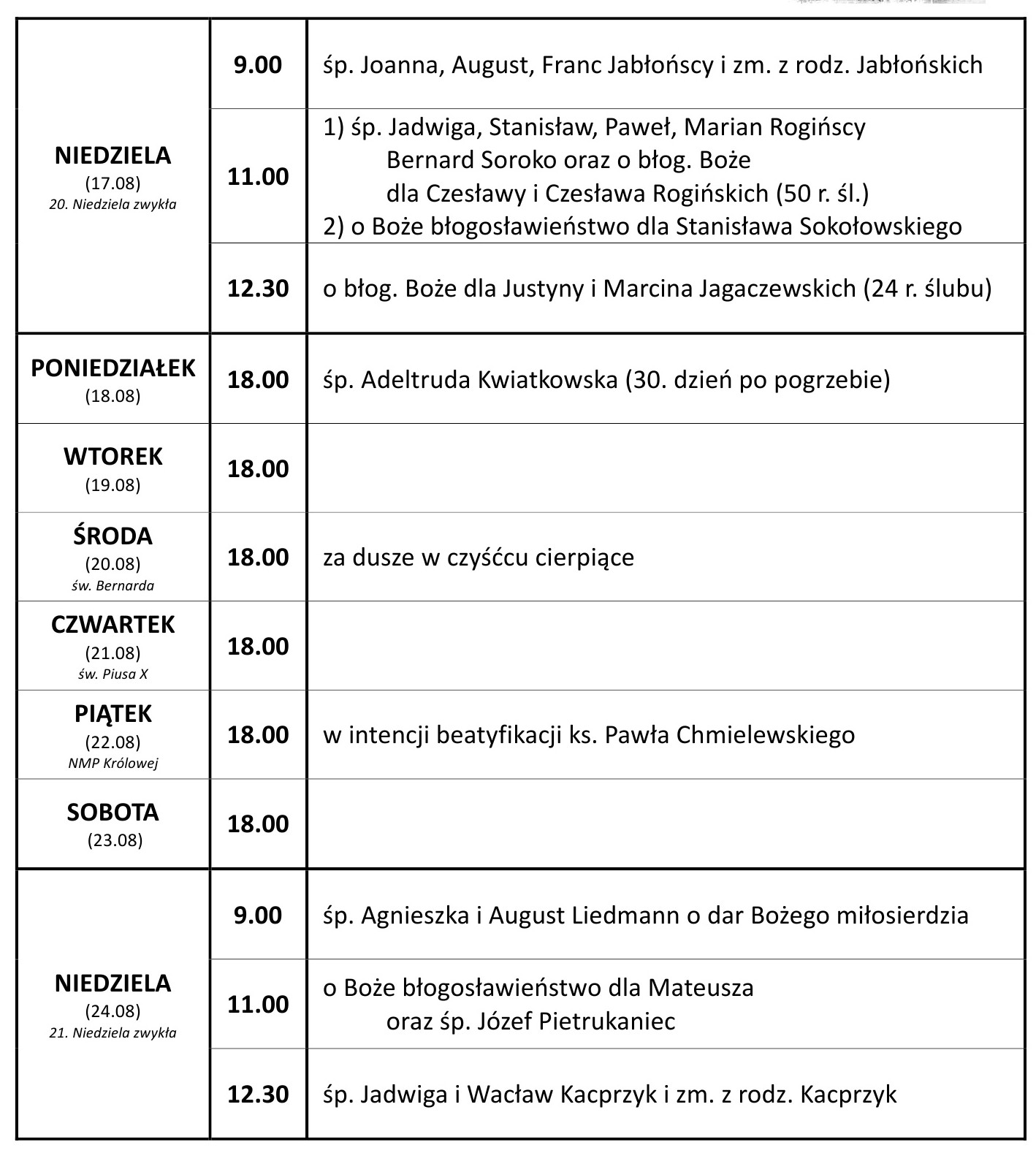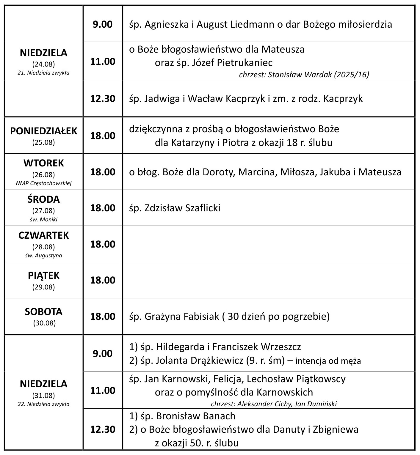 Intencje mszalne 10.08.2025 – 17.08.2025