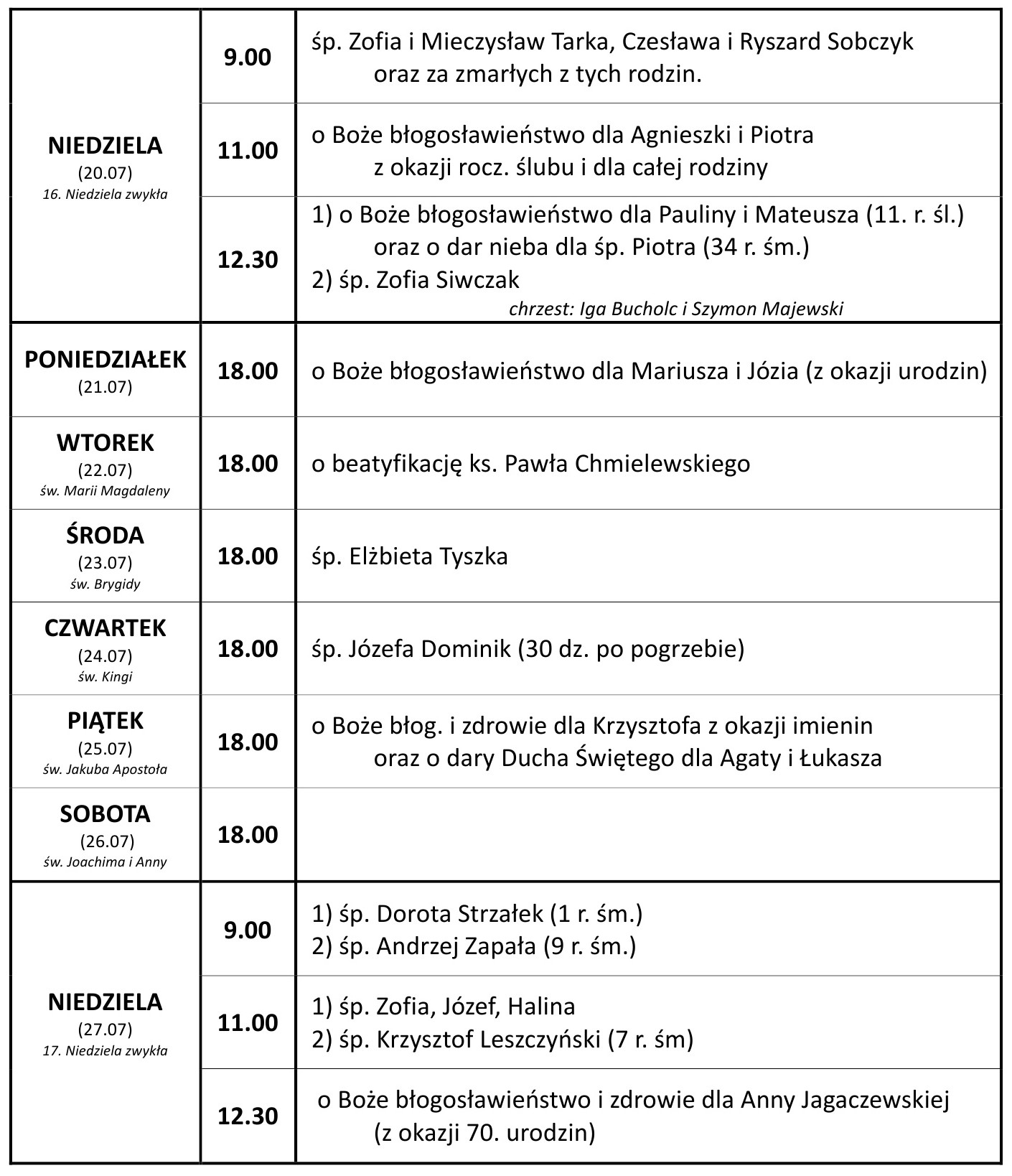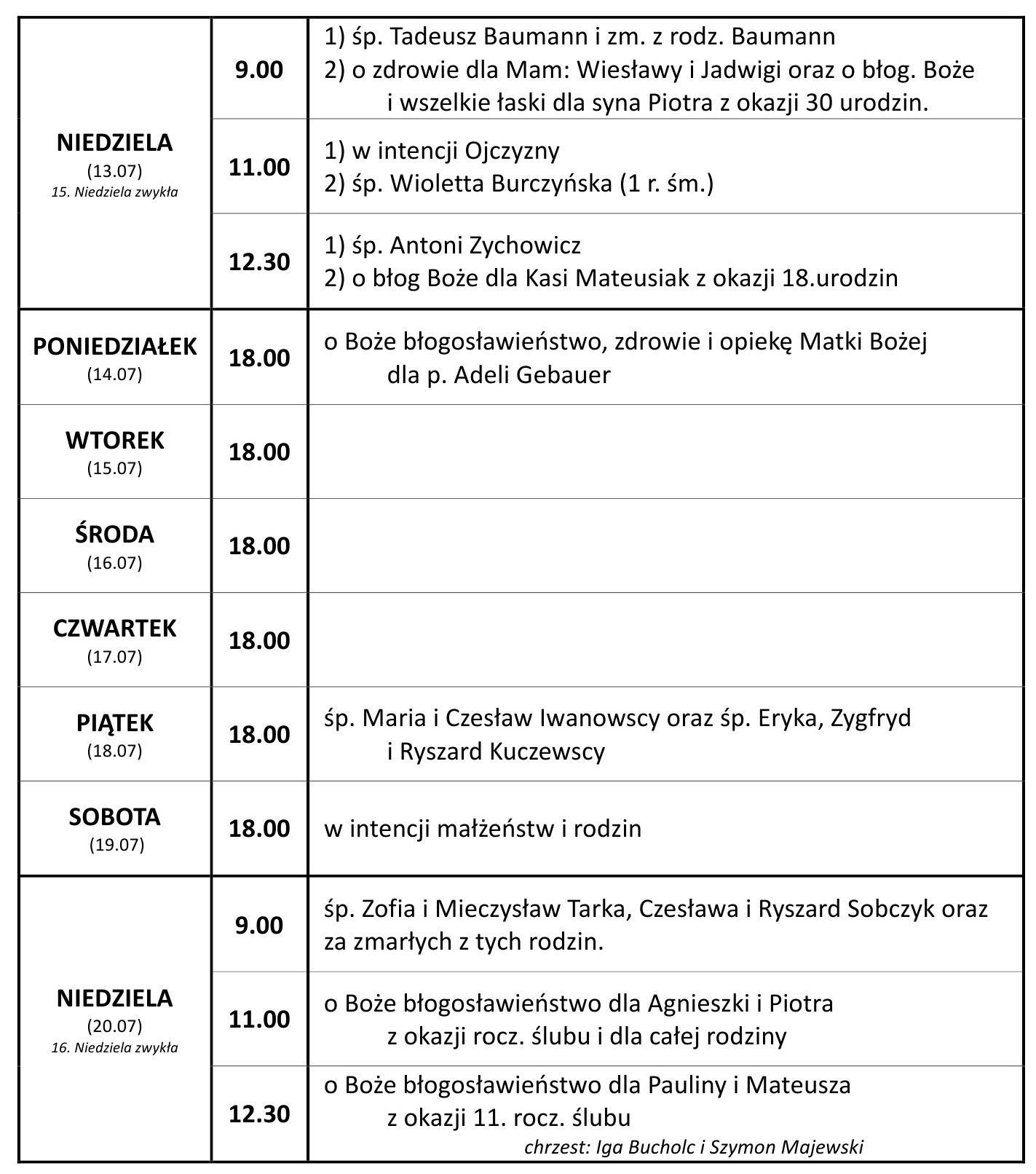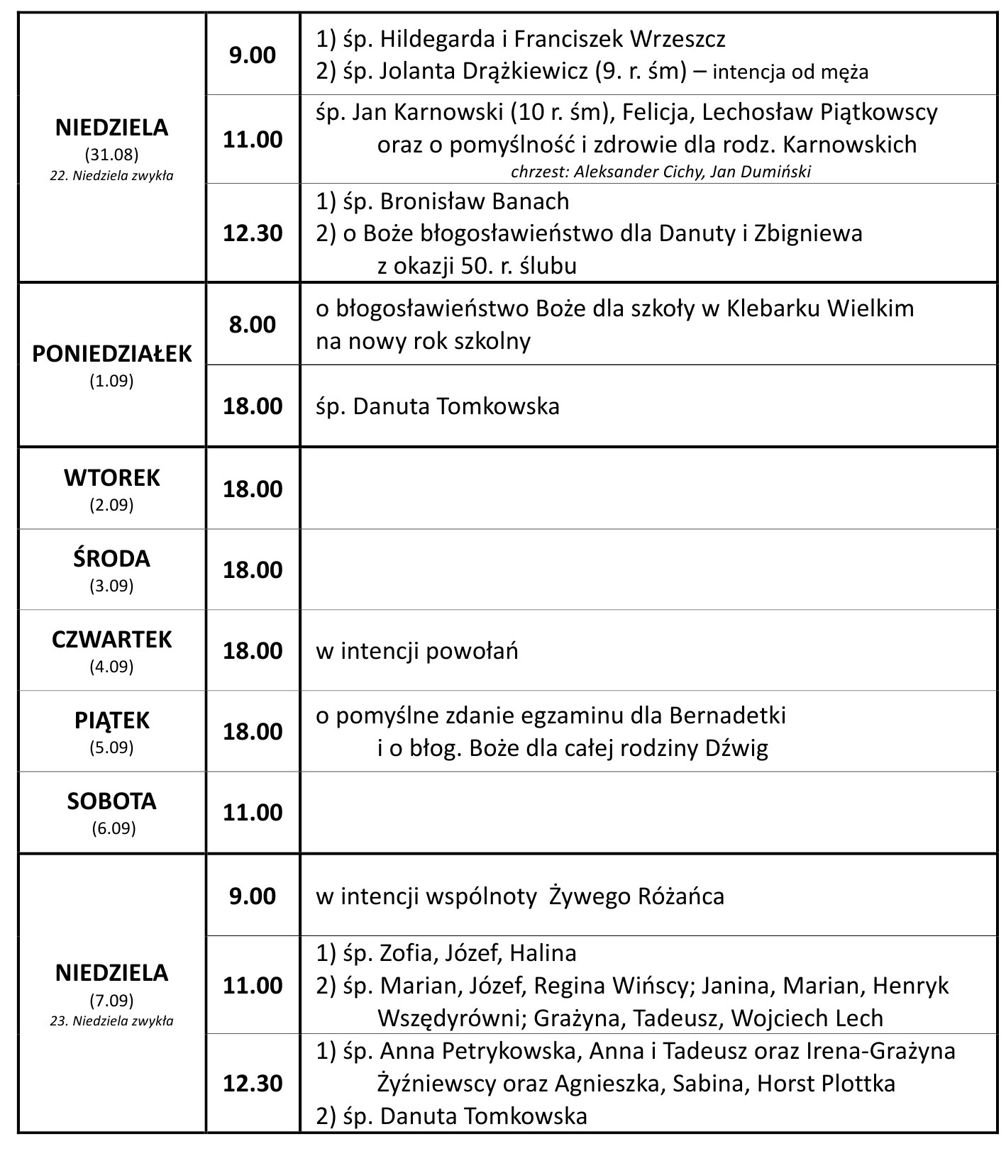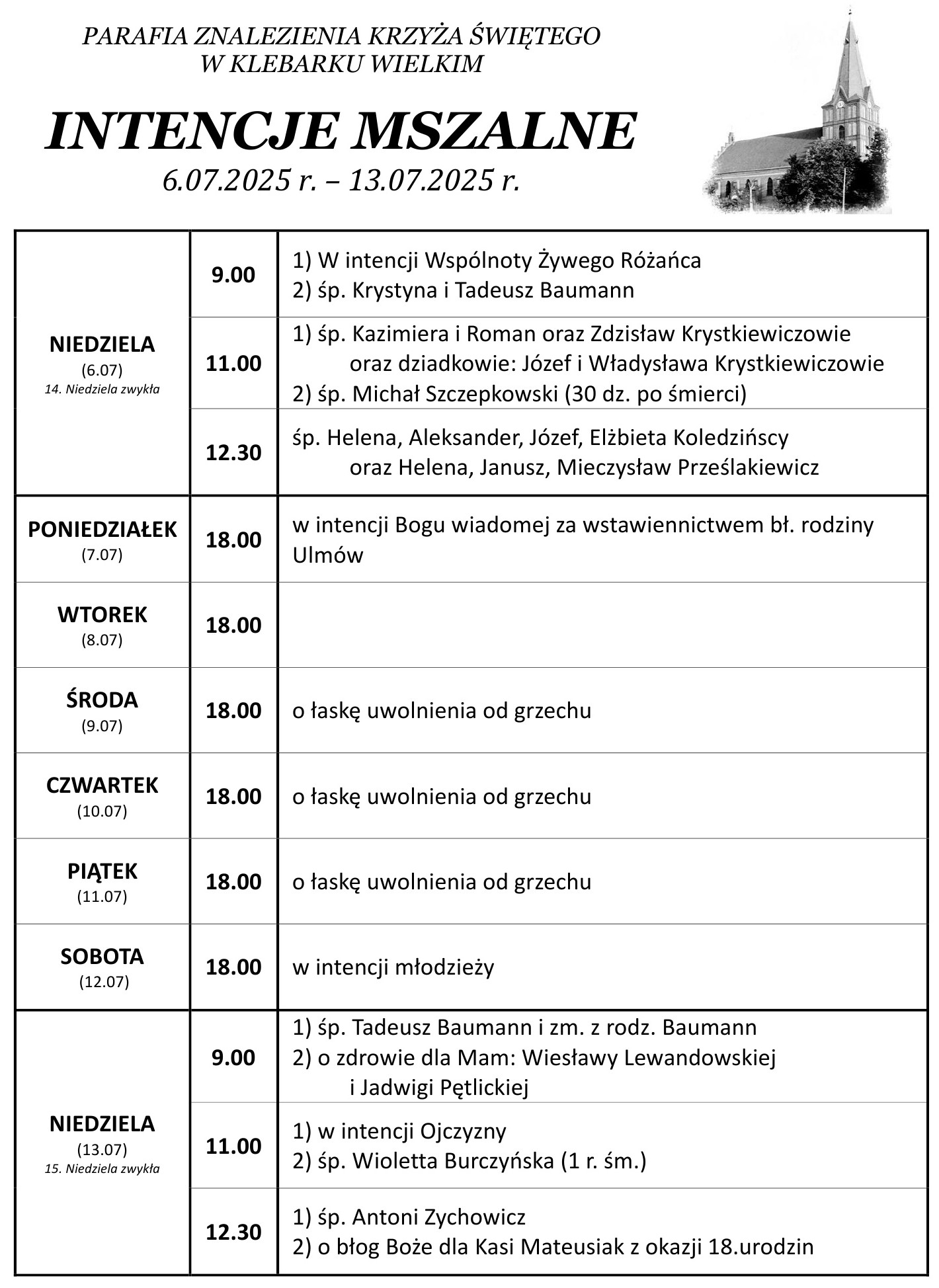 Intencje mszalne 10.08.2025 – 17.08.2025