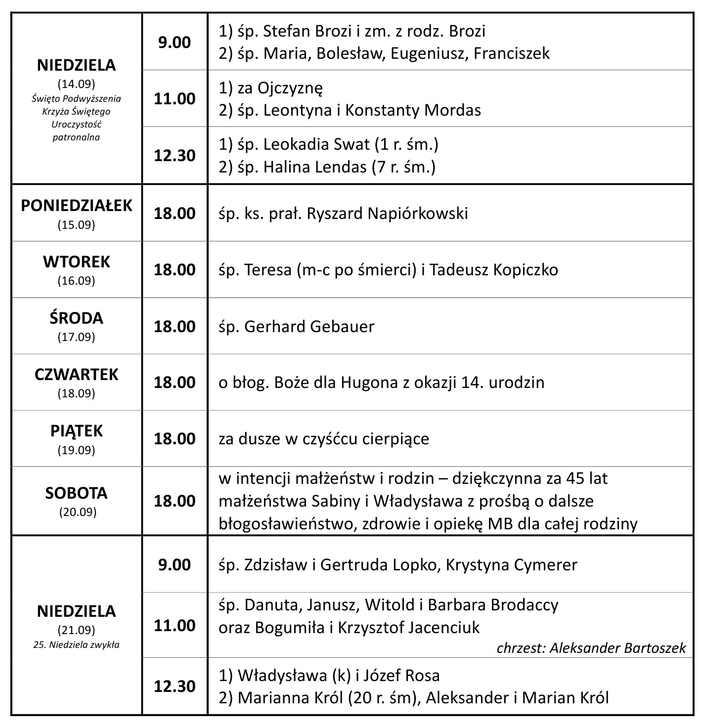 - spotkanie wspólnoty męskiej – w czwartek (4.09), godz. 20.00